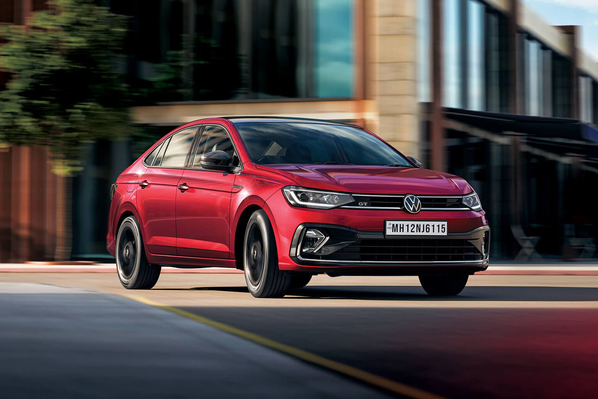 In India, Volkswagen will offer the Virtus with two engine options. The first is a 1.0-liter TSI engine that produces 115 PS and 175 Nm torque, and it will be available on the Dynamic Line variant. The other is a larger 1.5-liter four-cylinder mill with 150 PS and 250 Nm torque for the Performance Line trim. Transmission options include a six-speed manual, a torque-converter automatic, and a 7-speed DSG. The latter is exclusive to the higher-displacement motor.