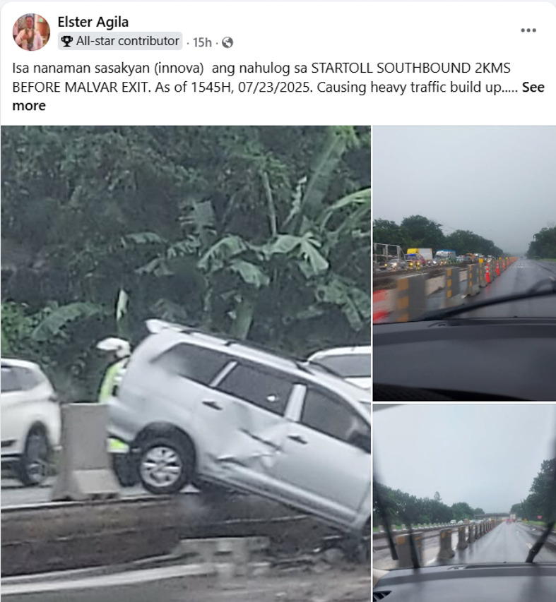 Another user, Irene Dureza, has this to say: “So I’m calling the attention of SLEX management and San Miguel Infrastructure for the nth time. This wasn’t my first rodeo with a near-miss accident on SLEX and STAR Tollway due to an extremely deep pothole.