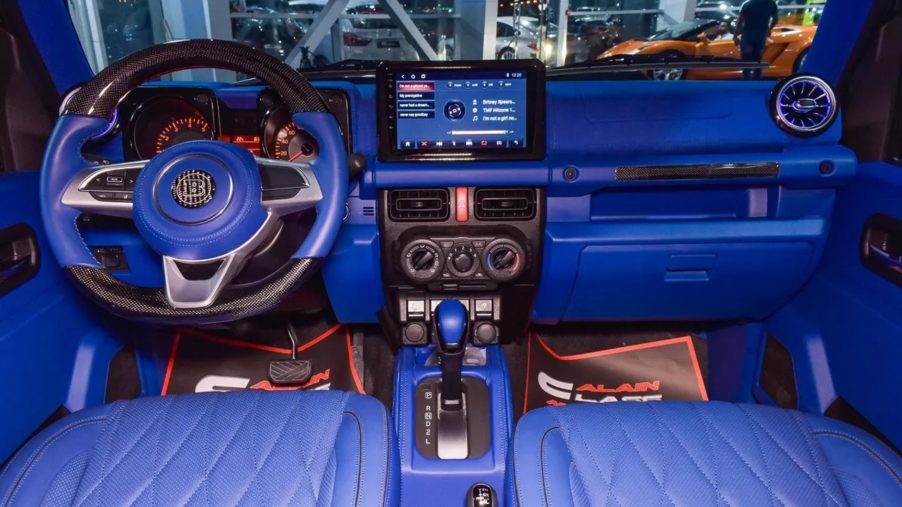 Apart from the exterior upgrades, whoever dressed up this Jimny was also busy changing up the interior. From the dashboard, leather-lined seats, steering wheel, round aircon vents, and the headliner, the Jimny Brabus G63 looks (and feels) just like the real thing.