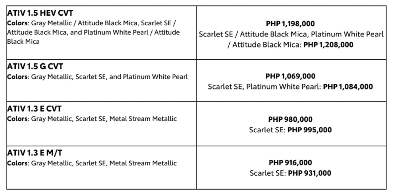 “The all-new Toyota Ativ is another statement of Toyota’s continued mission to bring electrified mobility within reach of more Filipinos. We know choosing your first car, and an electrified model at that, can be a bold decision, so the ATIV makes it simple and easy by delivering modern HEV features, while providing peace of mind with reliability, safety, ease of ownership, and joy of use,” said Elijah Sue Marcial, TMP First vice president for Vehicle Sales Operations.
