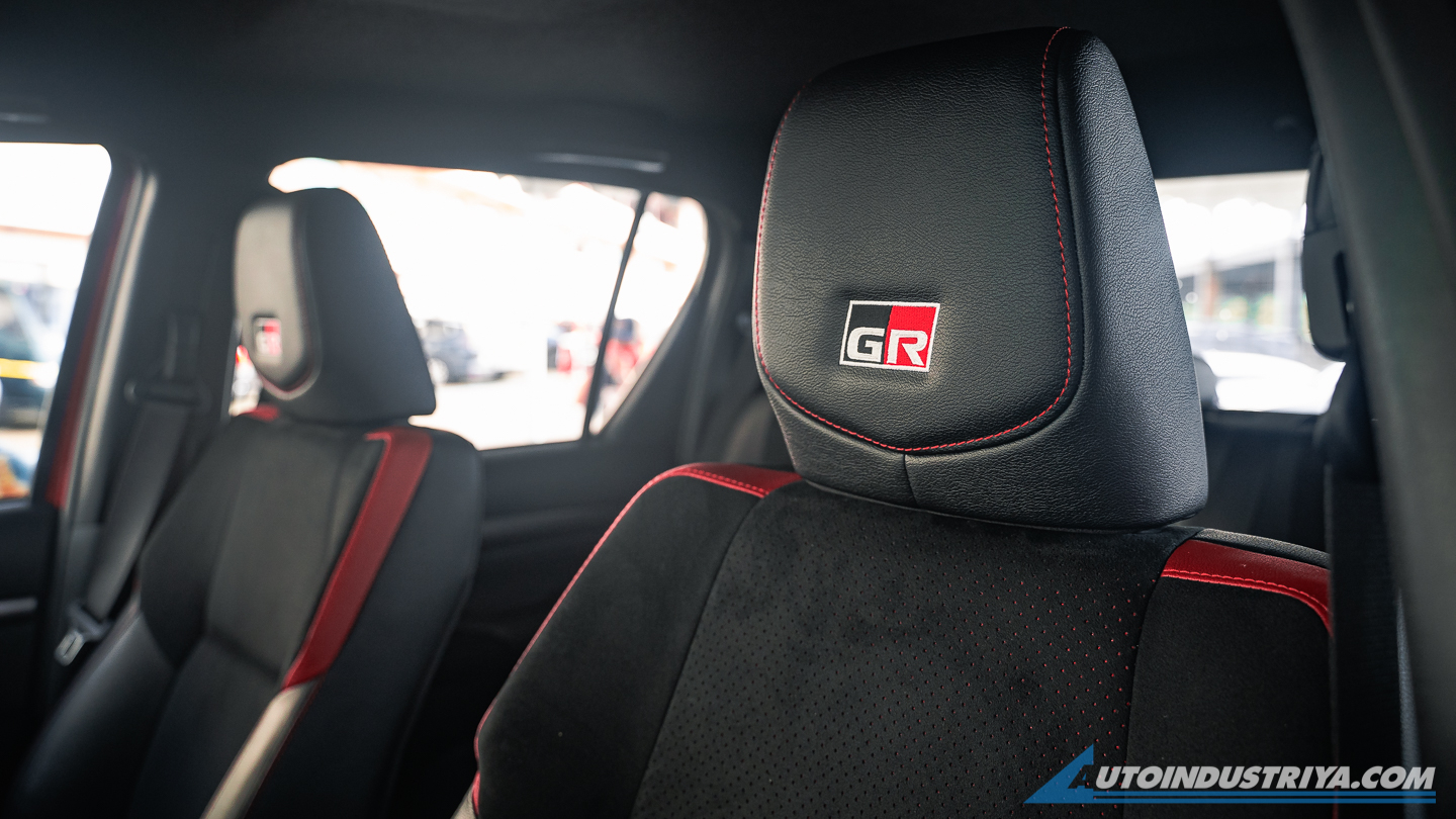 Inside, the cabin has been given a sporty makeover to match the exterior. Red, black, and smoke silver metallic accents line the cabin. It’s matched with a GR Sport steering wheel, aluminum pedals, and sport-type front seats that use a mix of leather and suede and are power-adjustable. On the Fortuner, there are matte carbon trims on the center cluster, while the Hilux GR Sport now comes with paddle shifters.
