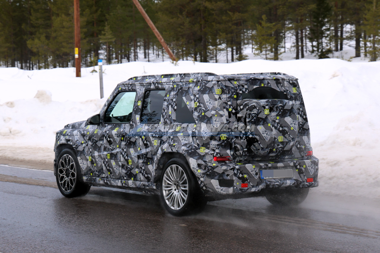 Based on what our spies were able to capture, the camouflaged prototype has a unique livery that's covered in small “g”s. Unlike the G-Class, which uses an uppercase, the smaller version will use a lowercase to distinguish itself from the G-Class model.