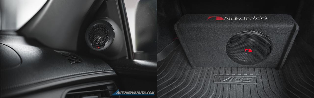 The in-car entertainment system has also been upgraded too. The standard audio unit has been swapped out for a Nakamichi 1200 Competition Series head unit for enhanced audio. The head unit matches perfectly with the Nakamichi NSE 1677 front speakers, the NSE 1617 rear speakers, as well as a Blaupunkt NBX 25L 100-watt active subwoofer. And to help with the audio quality, this Vios also has sound deadening courtesy of Nakamichi from PartsPro.PH.