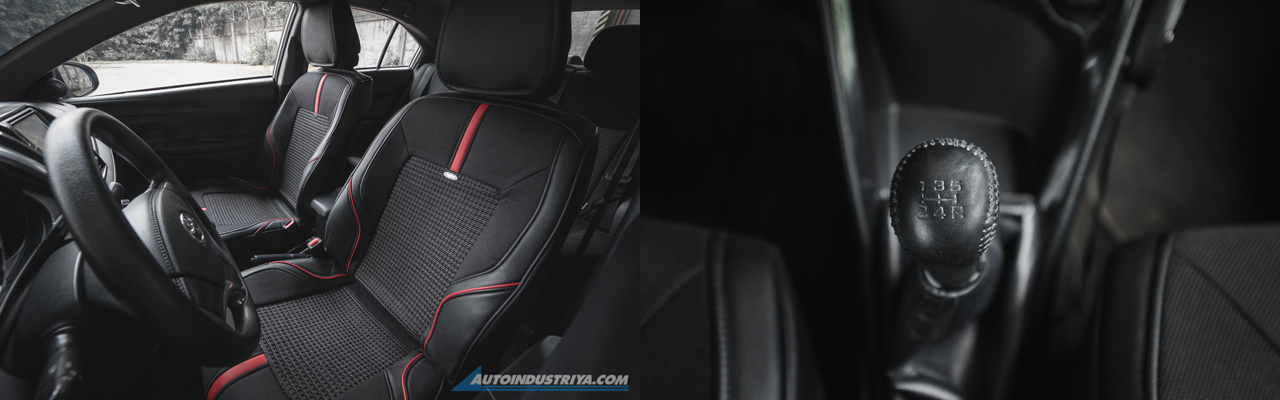 Once inside, you'll see that PartsPro.PH made some nice upgrades. This Vios has a set of Shark Seat Skin seat covers for that custom look, and they go very nicely with the TRD shift knob for a good and positive grip when driving.