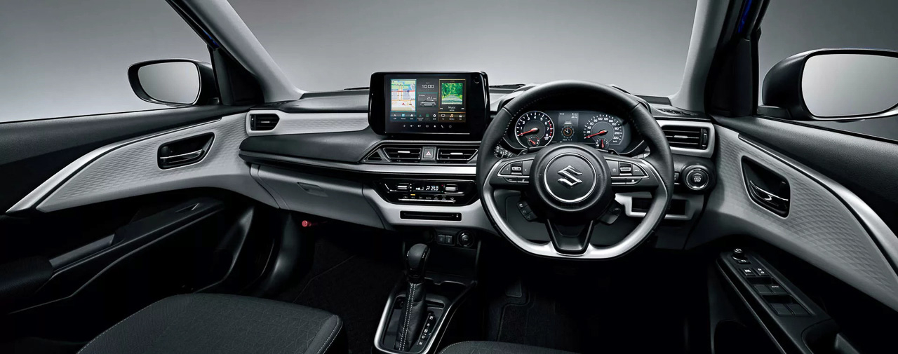 Hop inside and Suzuki was also busy changing up the Swift's interior. Immediately you are greeted by a bigger touchscreen on the center of the dashboard, a new climate control system, and sportier-looking gauges. Complementing the restyled cabin is a two-tone finish that consists of a black & white finish along with contrast stitching on the seats, as well as a flat-bottom steering wheel.