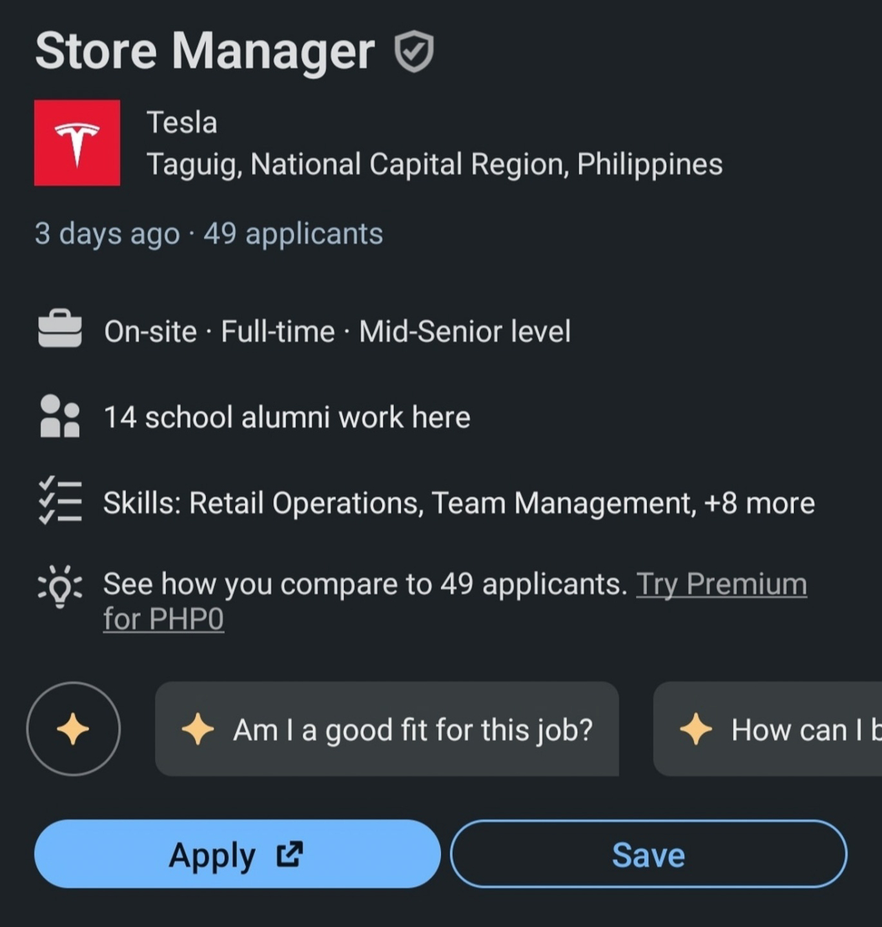 It has come to our attention that Tesla may be (or is) working to set up operations in the Philippines. Specifically, they seem to be looking at Taguig. Our indicator for this is a popular social network for hiring: LinkedIn.