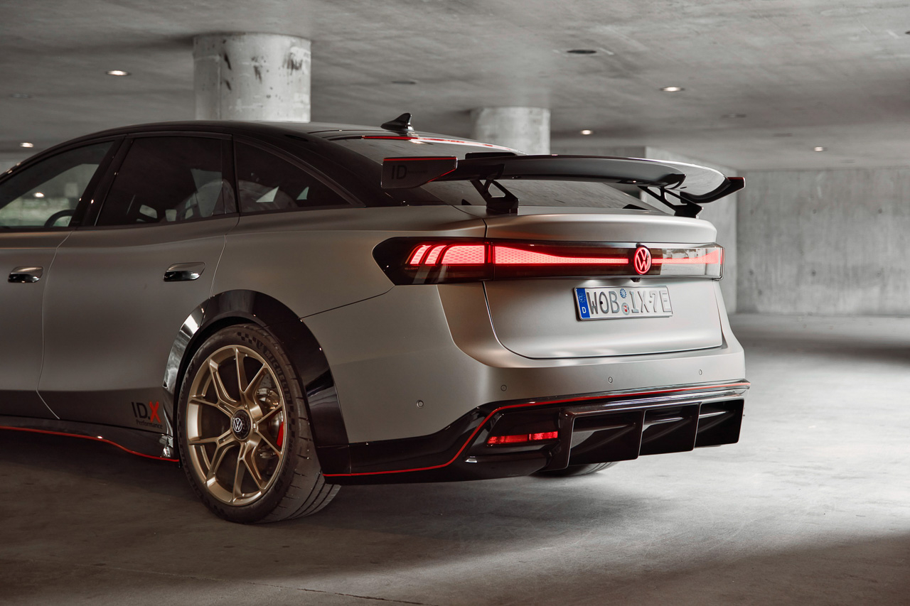 It is still early in the concept’s development but the ID.X Performance shows plenty of sporty exterior features like a carbon front splitter and rear diffuser, increased toe by 80 mm, and a sports suspension system lowered by 60 mm using stiff springs. Size 265 racing tires wrapped around 20-inch alloy wheels keep it connected to the ground, while a carbon wing delivers the necessary downforce.