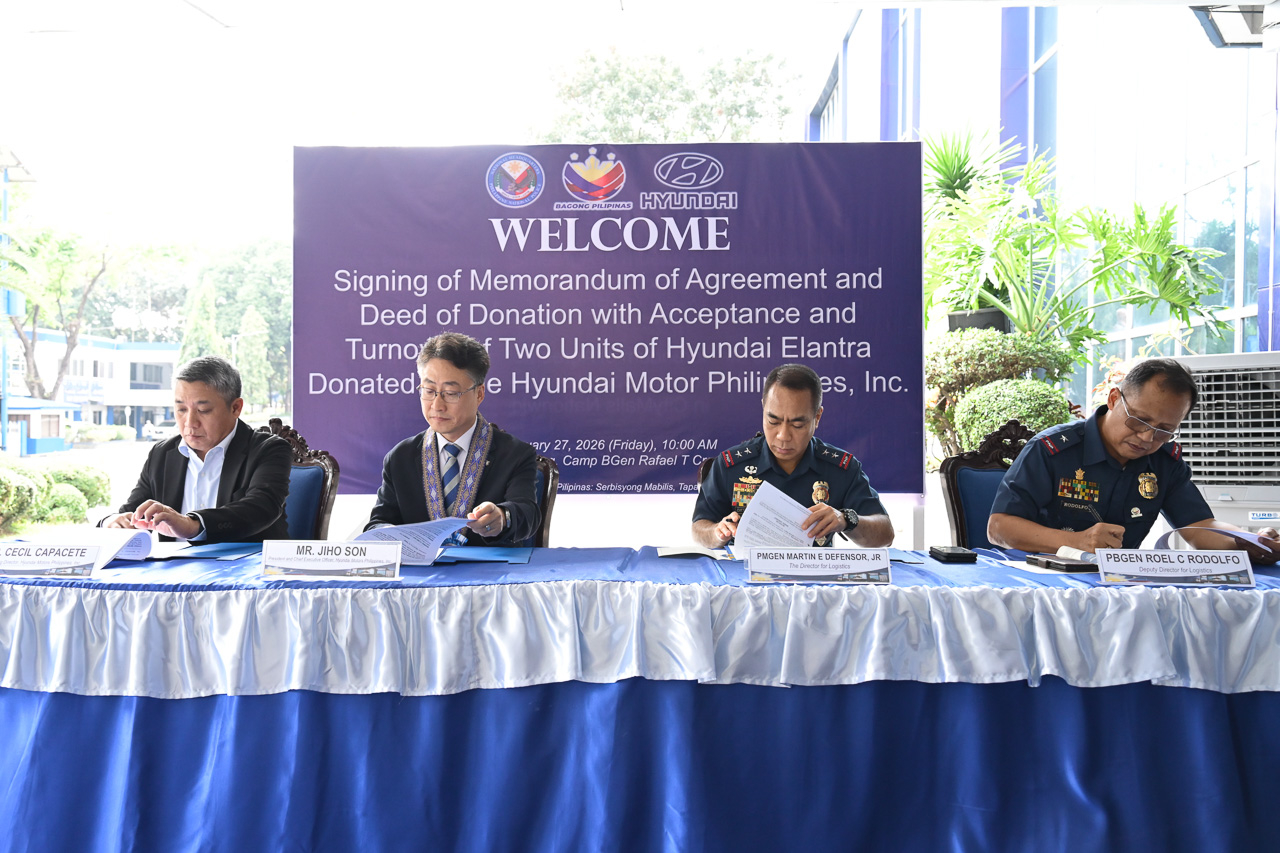 Hyundai Motor Philippines Inc. (HMPH) formally handed over two Elantra units to the Philippine National Police (PNP).