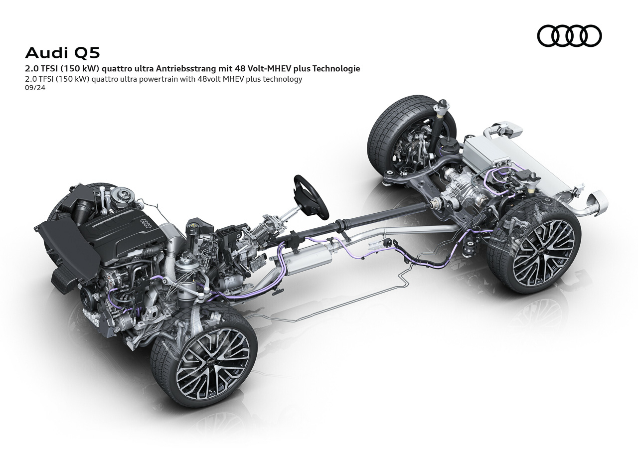 A total of three engines are available upon its launch and all benefit from mild-hybrid (MHEV) technology. With it, Audi claims it can provide up to 24 PS of additional power and 230 Nm of torque for short periods thanks to a 1.7 kWh battery and an electric motor. In addition, all engine variants of the 2025 Q5 are paired with a 7-speed S tronic dual-clutch transmission.