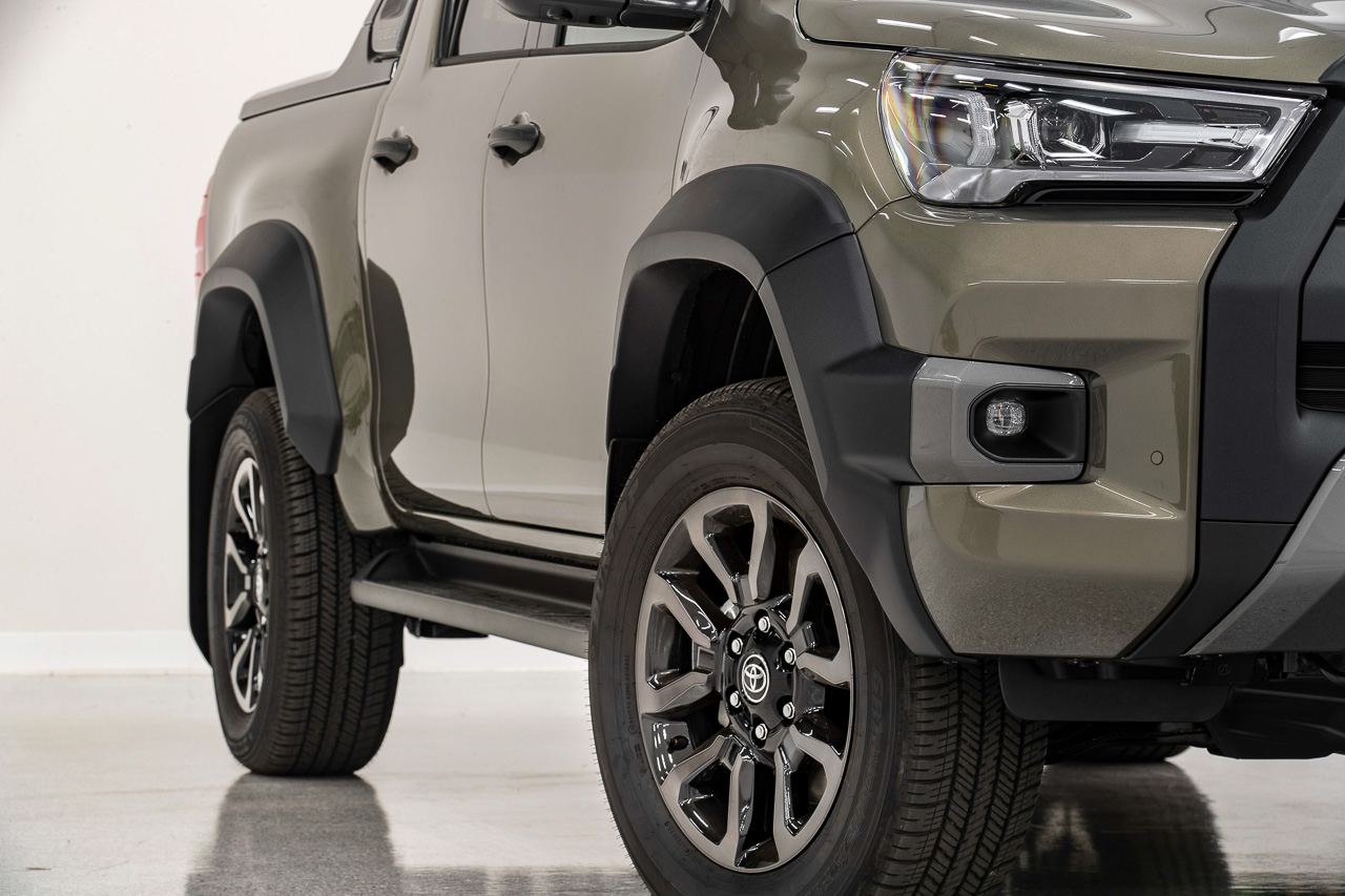 Other mechanical and exterior upgrades Toyota installed on the new Hilux Rogue include 17-inch front disc brakes (1-inch larger than regular models), mudguards, and a front body extension.
