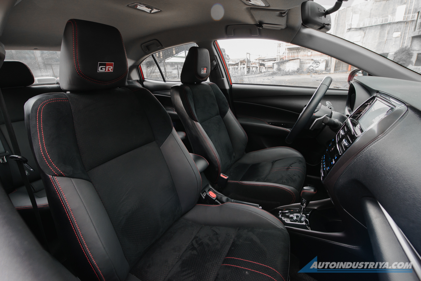 The GR-S variant was the sportiest-looking Vios that was offered by TMP. It had the Gazoo Racing styling treatment, borrowing some design cues from the GR Yaris, particularly with its front bumper. The GR-S variant had a wraparound body kit with a ducktail-type spoiler, black mirrors and door handles, 16-inch alloy wheels with stickier tires, and the complementary GR Sport badges. Meanwhile, the cabin was also given the Gazoo Racing style treatment with a GR branded gauge cluster, plus red stitching on the suede and leather upholstery.