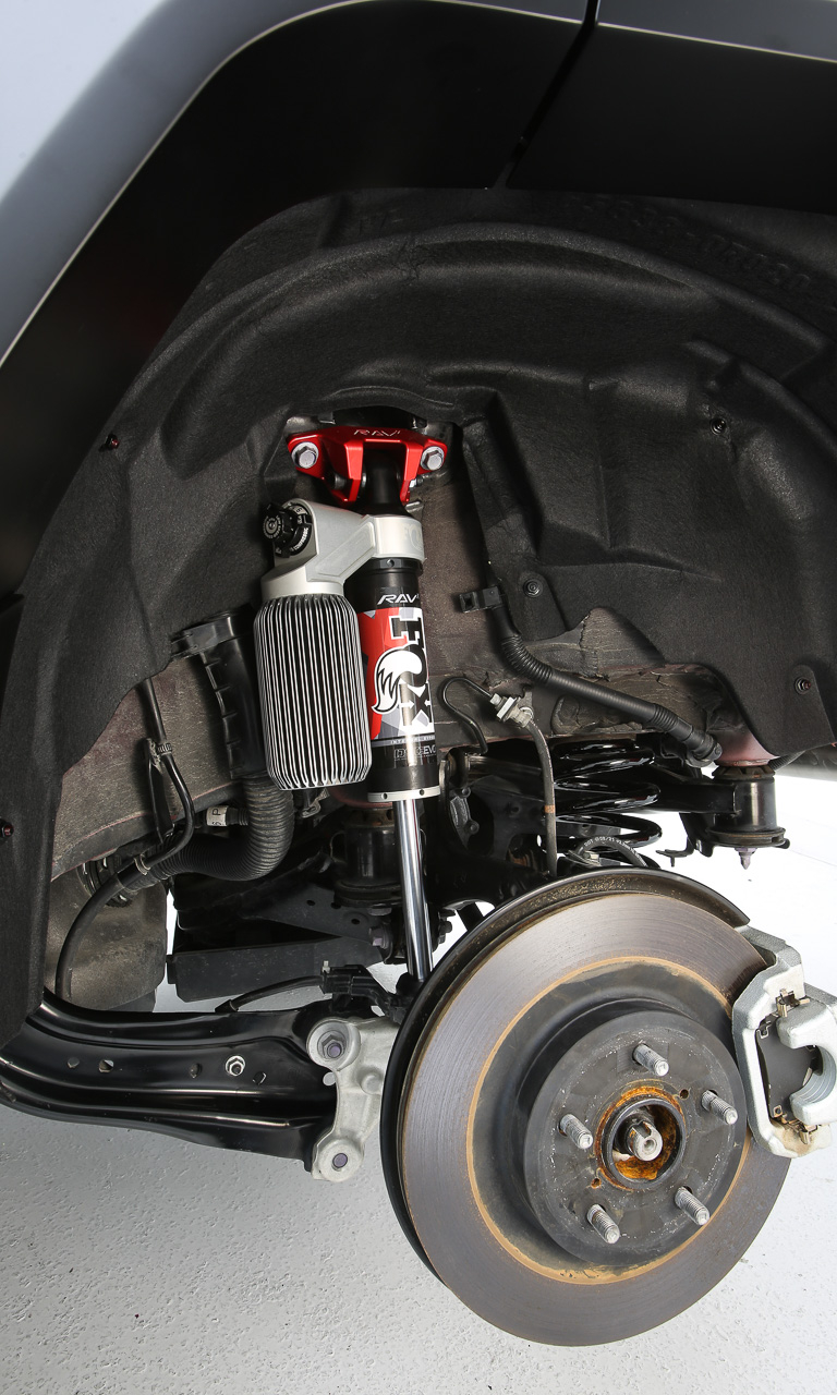 With a beefed-up suspension, chunky off-road tires, and a sleek exterior, this tricked-out RAV4 is not only a looker but is ready for uneven terrain. The RAV-X is the brainchild of Toyota Service Parts and Accessories Development (SPAD) in North America, a team focused on accessories and performance upgrades. What originally started as a sketch became a concept car complete with several features.