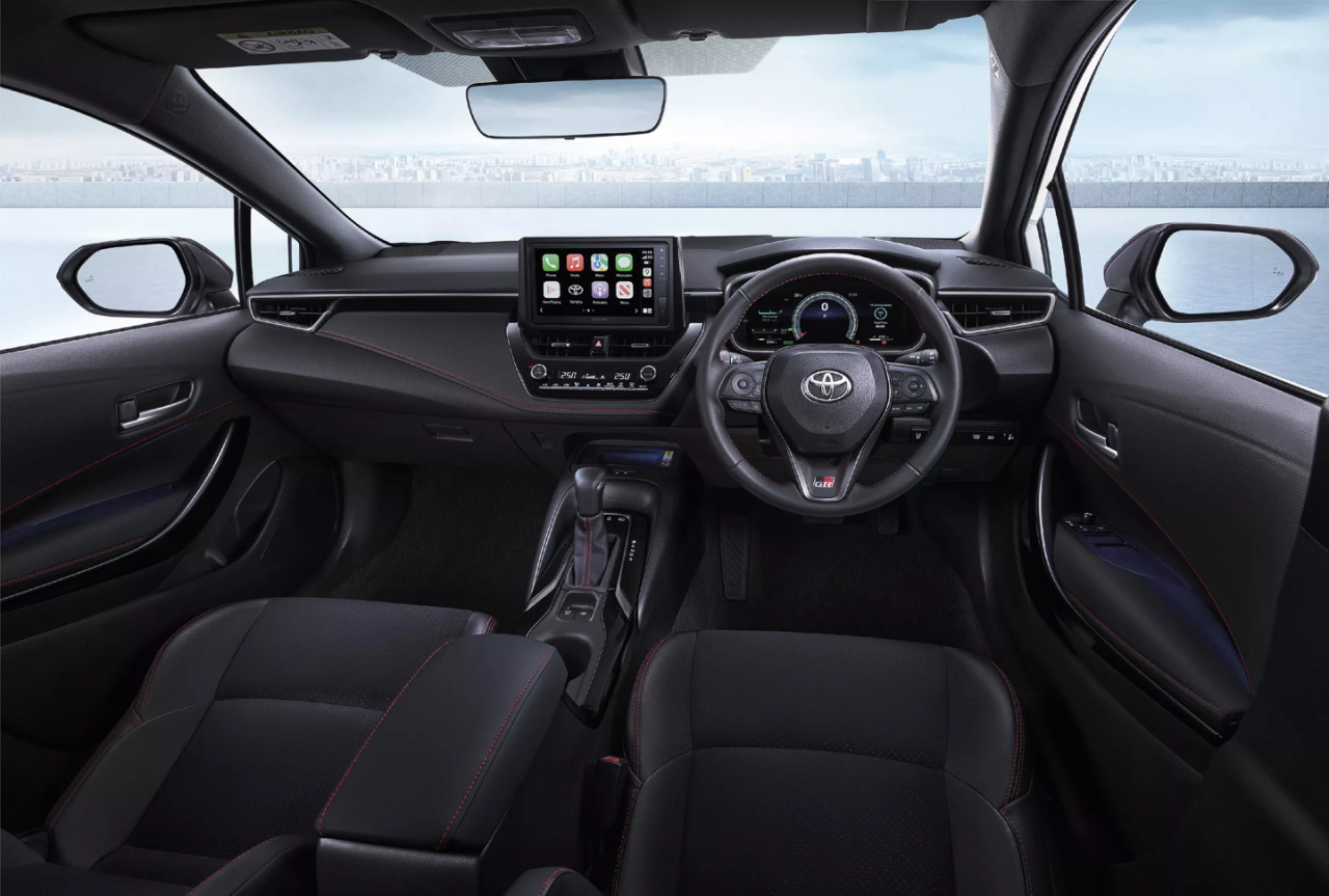 Inside, the Corolla Altis GR Sport HEV gets the new 12.3-inch digital instrument cluster found on the Corolla Cross GR-S HEV, along with a bigger 9-inch infotainment display with wireless Apple CarPlay and Android Auto, a color heads-up display, and red seatbelts. Other features like the leather upholstery with red contrast stitching, plus GR branding on the steering wheel, seats, and start/stop button have been carried over from the pre-update model.