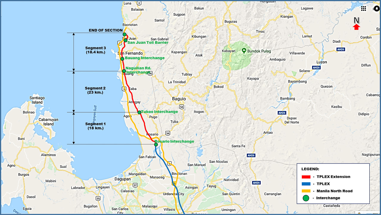 The first segment will measure 18 km and will link Rosario to Tubao. Meanwhile, Segment 2 will connect Tubao with Naguilian and will span 23 km. Last is Segment 3 which will be 18.4 km long and will span from Naguilian to San Juan.