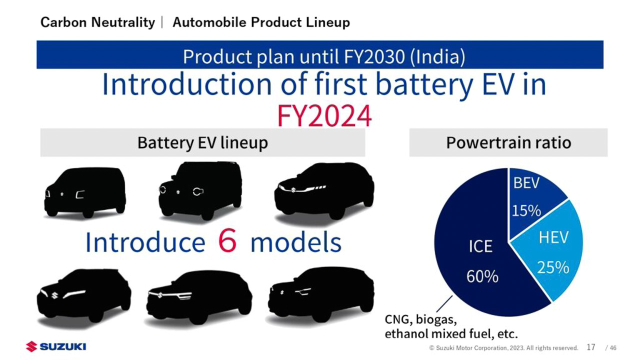 Over in Japan, Suzuki says the first EV will arrive this year and they will be introducing 6 new models. The Japanese market will have an almost similar lineup to Europe except for what looks like an EV version of the Hustler and Every kei cars. But unlike Europe, Japan wants the BEV lineup in its home market to only consist of 20% BEVs while HEVs will make up the remaining 80%.