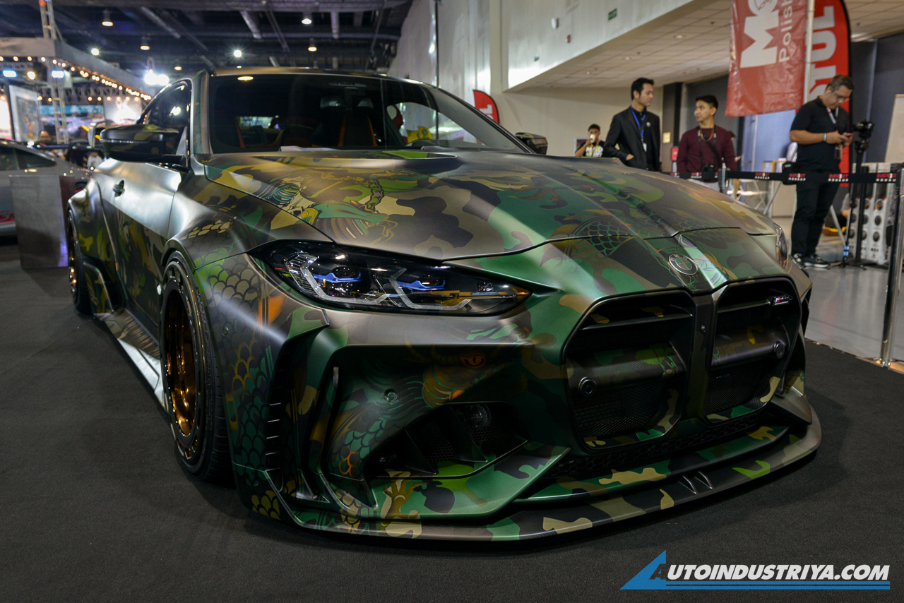 Keith Bryan Haw of Import Hookup showcased his best builds to the show, filling their space with extreme custom builds such as a heavily modified BMW M4 art car by renowned artist Ronald Ventura. Using the entire car as his canvas, he laid on several layers of paint with different patterns to come up with this unique artwork. Sharing the same space were a modded JCW Mini, Lamborghini, Porsche, G-Wagen, and an all-white, custom, Ferrari 348.