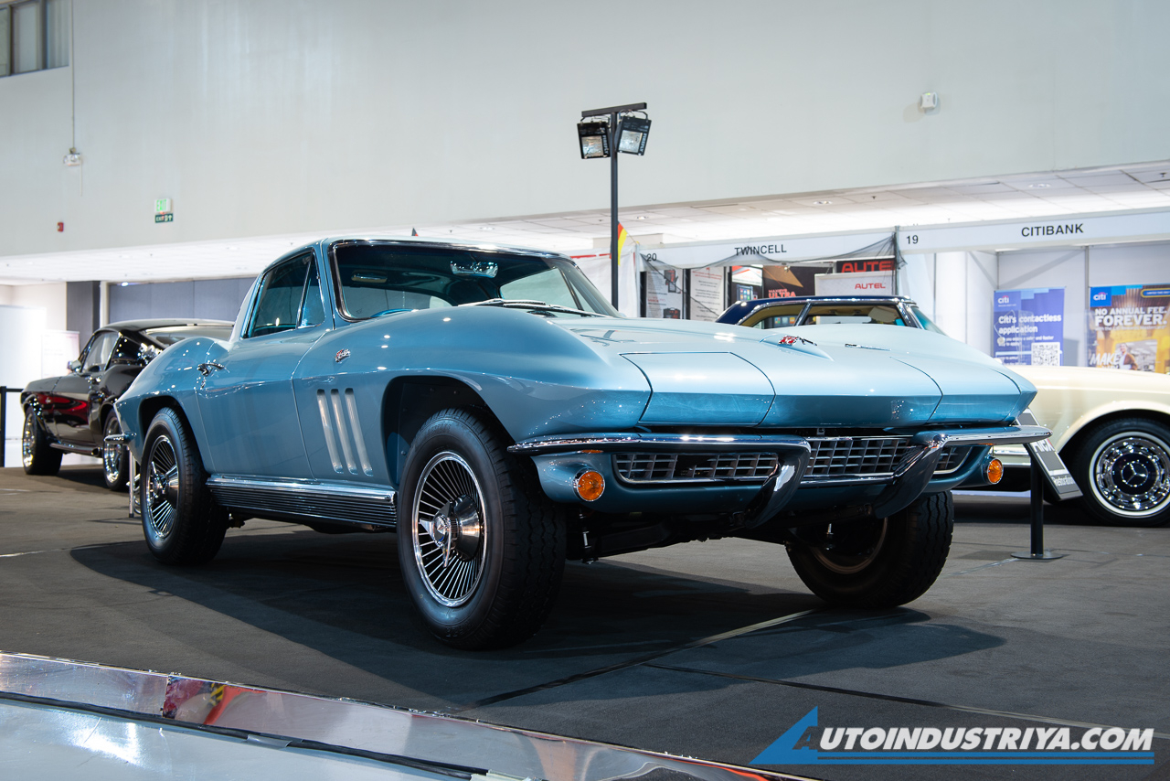 On the other side, there was a booth that had a combination of German and American classic cars. If you're familiar with "Eleanor", the Shelby GT500 was there, albeit in "Super Snake" inspired form and finished in a different color scheme. There was also a Chevrolet Corvette Stingray in its iconic blue paint, and a pair of 60s-era coupe "Chedengs", in other words, the Mercedes-Benz SL.