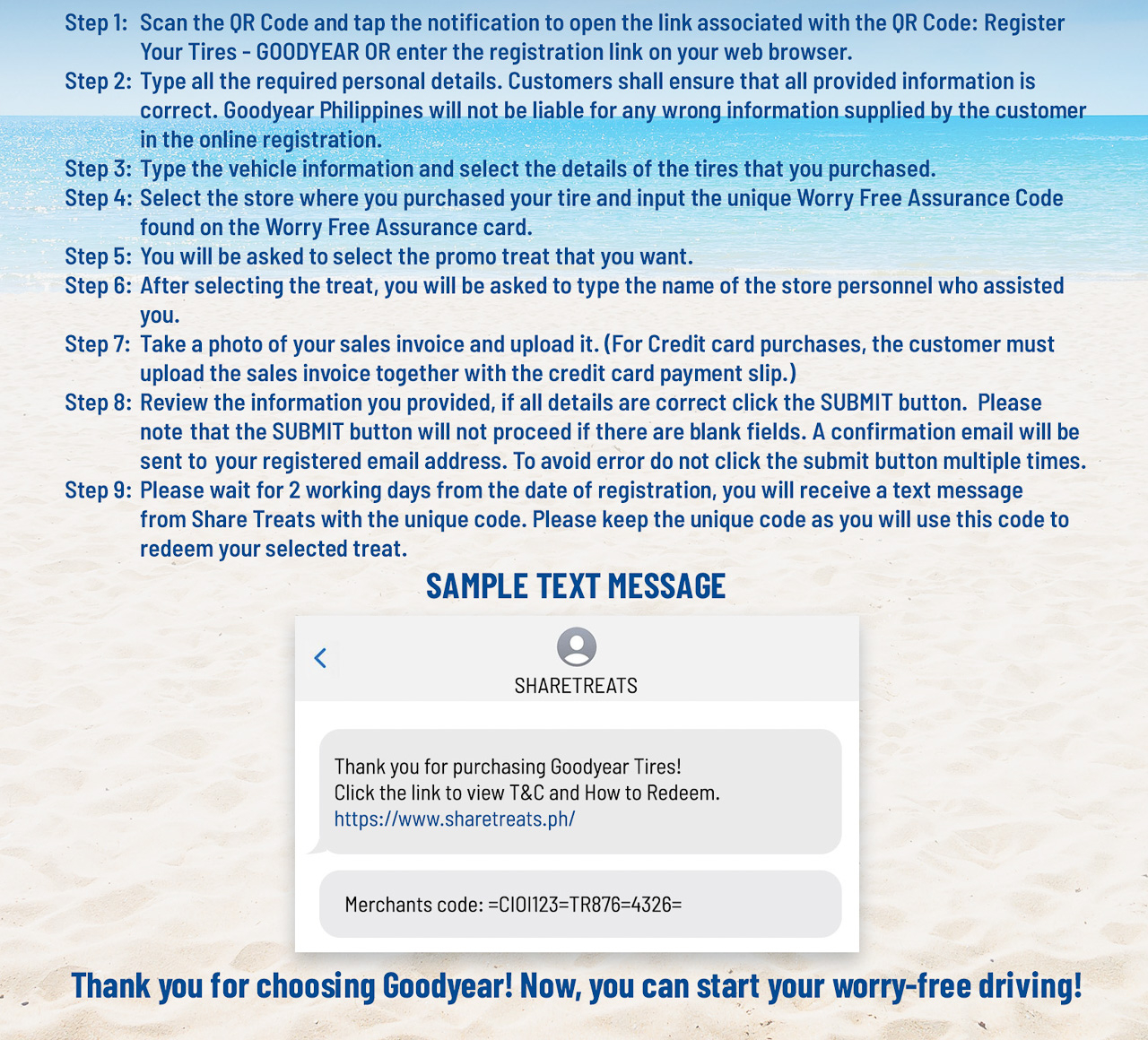 So what are you waiting for? Go to your nearest Goodyear Autocare service center to find out more about Goodyear's great summer deals and kickstart your worry-free driving!