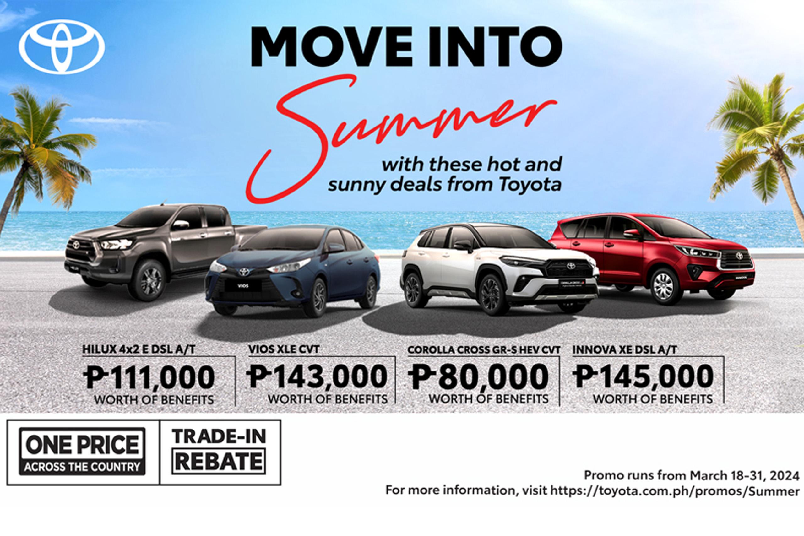 Drive into an exciting summer with Toyota! Promo runs from March 18 to 31, 2024 only.