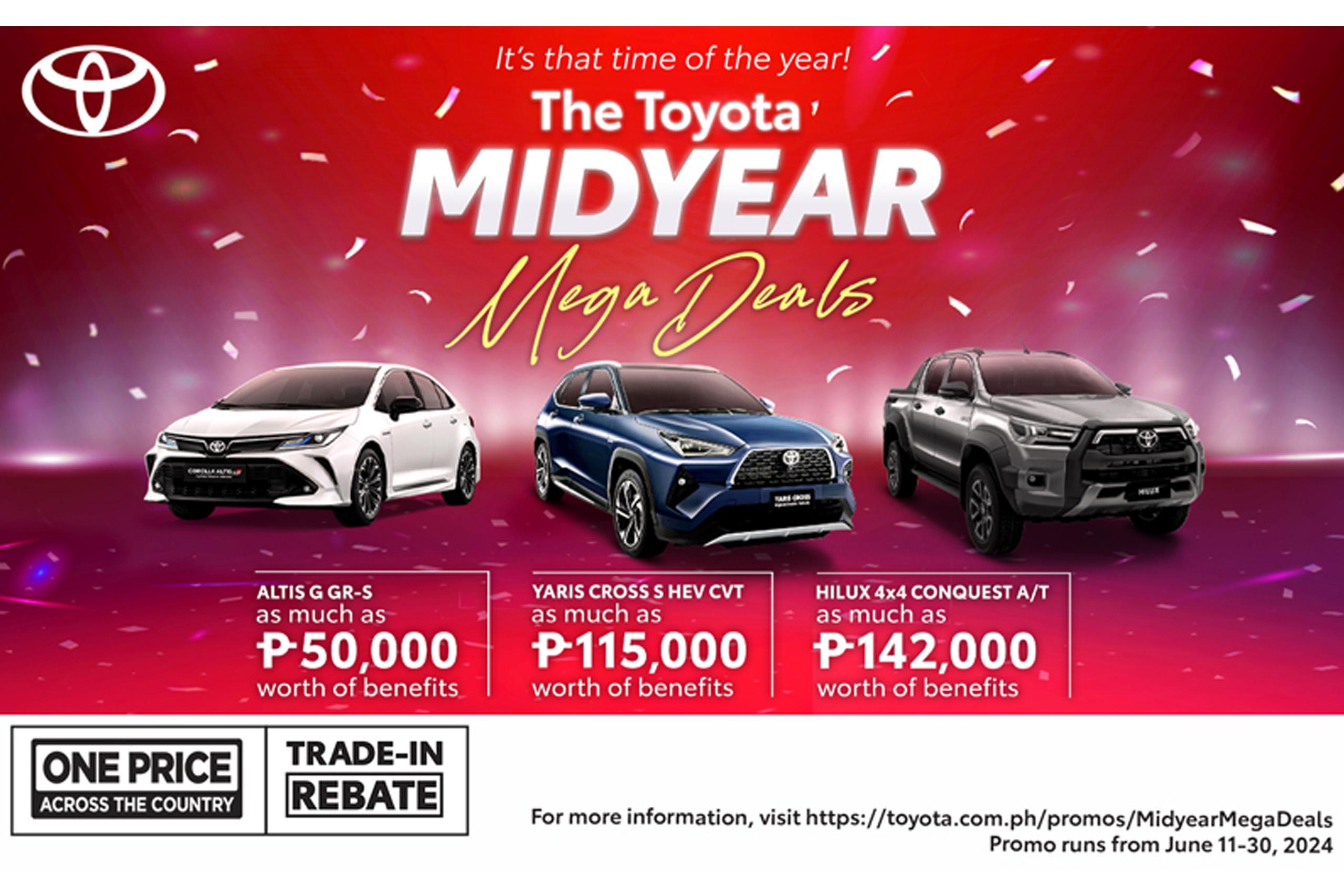 Toyota midyear mega deals promo runs from June 11 to 30, 2024
