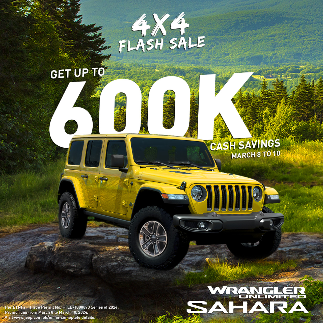 Inchcape Philippines, distributor of Chrysler, Dodge, Jeep, and Ram Trucks in the Philippines, under its IC Automotive Inc. operations, announces its thrilling 4x4 Flash Sale at all Jeep dealerships from March 8 to 10, 2024.