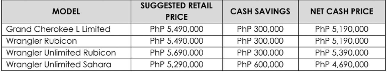 “This event is more than just a sale; it's an invitation to experience the essence of the Jeep brand. "We're excited to showcase our iconic lineup of vehicles and provide our customers with unparalleled savings and opportunities to win exciting prizes,” said Valerie Yu-Leong, AVP for Sales and Marketing at Inchcape Philippines.