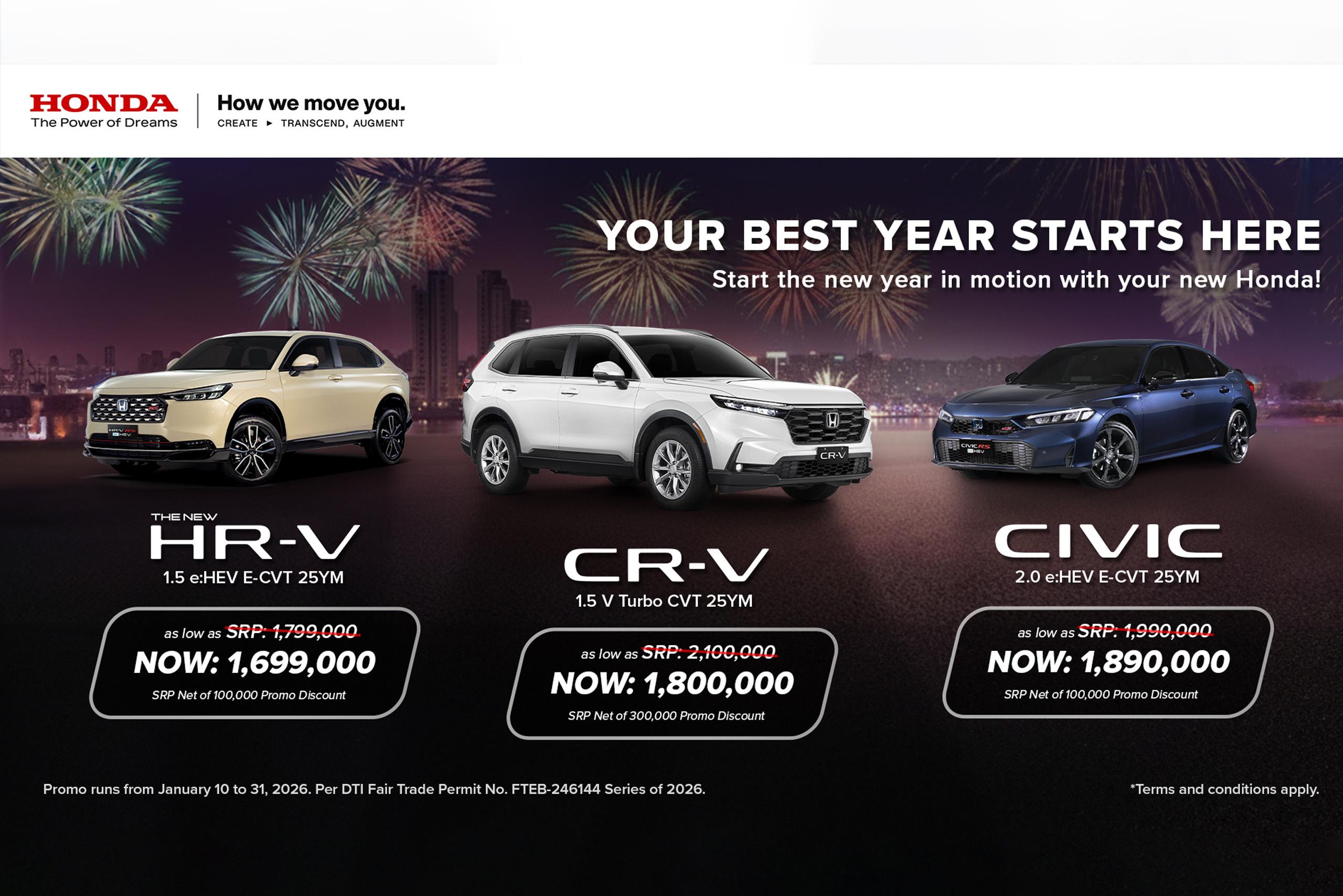 Honda Cars Philippines, Inc. (HCPI) is here to chase away post-holiday blues. Ring in what could be the best year with a hefty discount of PHP 300,000 discount on the CR-V V Turbo CVT, resulting in a net price of PHP 1,800,000. Other models, such as the City, BR-V, and HR-,V also get special discounts, all available with flexible financing options.