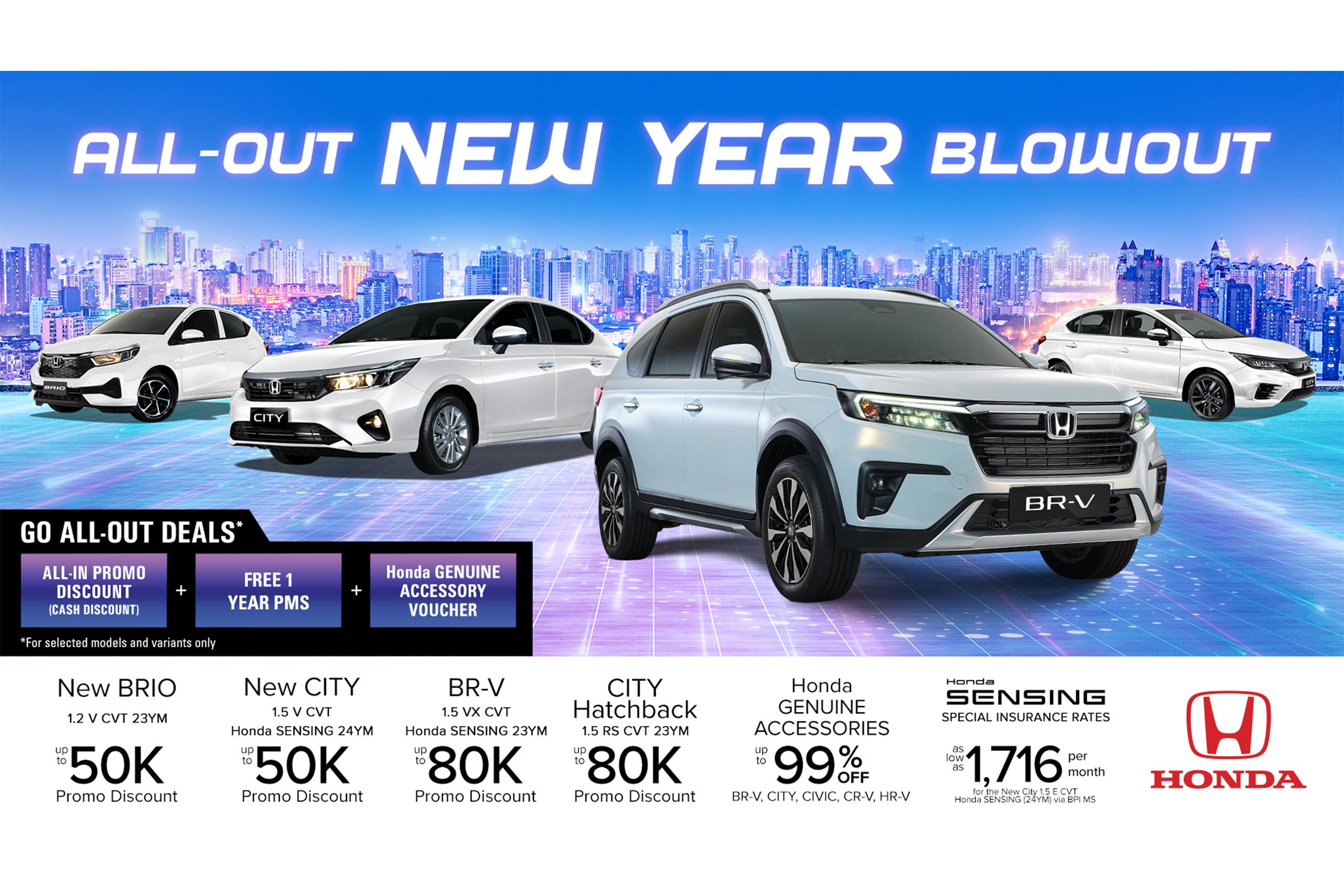 Customers interested in purchasing the Honda BR-V, new Brio, new City sedan, or City Hatchback this 2024 are also entitled to at least one (1) of the available packages under the All-Out New Year Blowout deals. Customers will also get a free one-year Periodic Maintenance Service (PMS) and a Honda Genuine Accessory voucher upon the release of their vehicle. This promo can also be used on top of other existing offers.