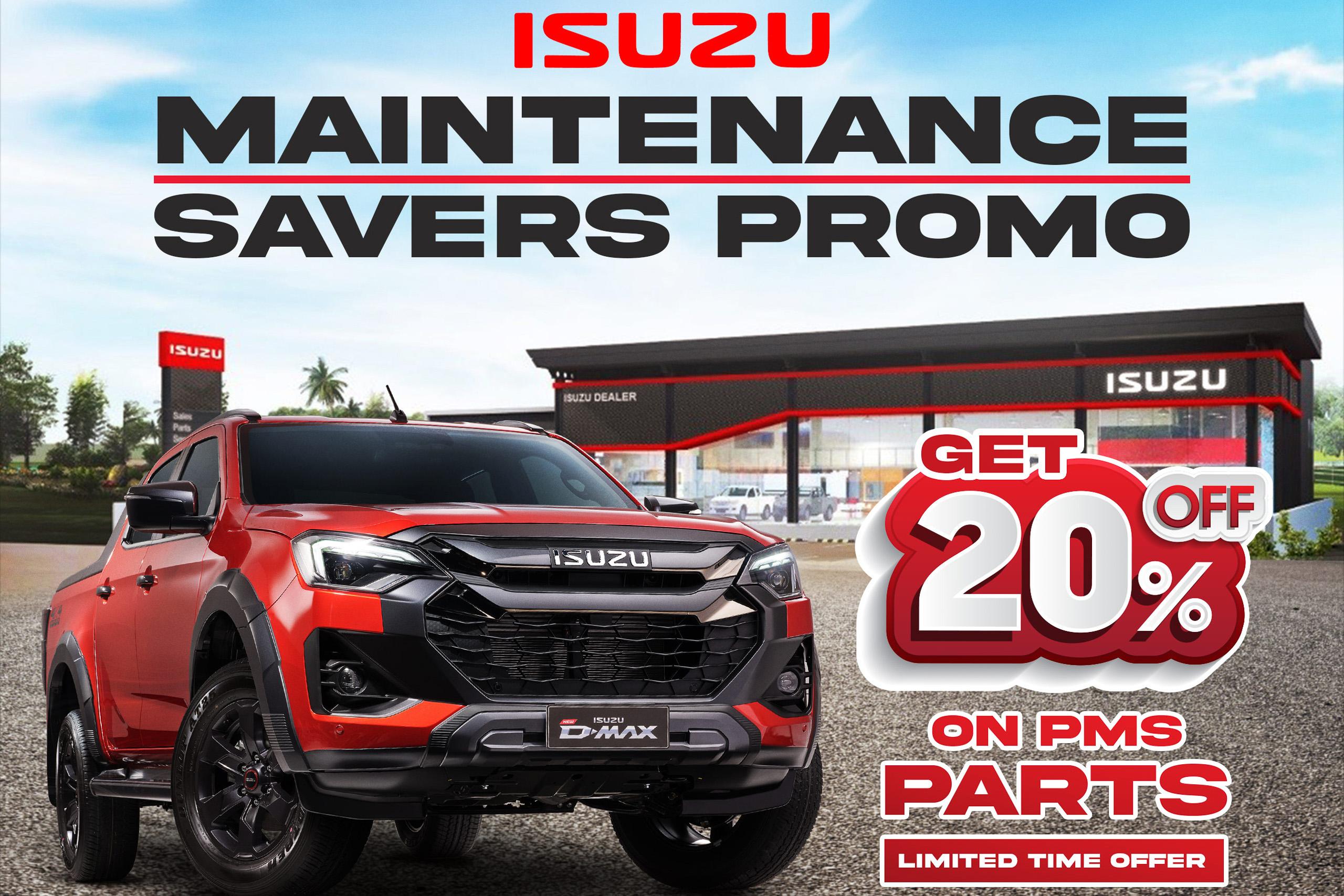 Available at all authorized Isuzu dealerships nationwide, the Isuzu Maintenance Savers Promo cannot be availed in conjunction with other Isuzu promo or discounts, and a can only be availed at participating authorized dealerships, including caravans and on-site servicing within the promo period.