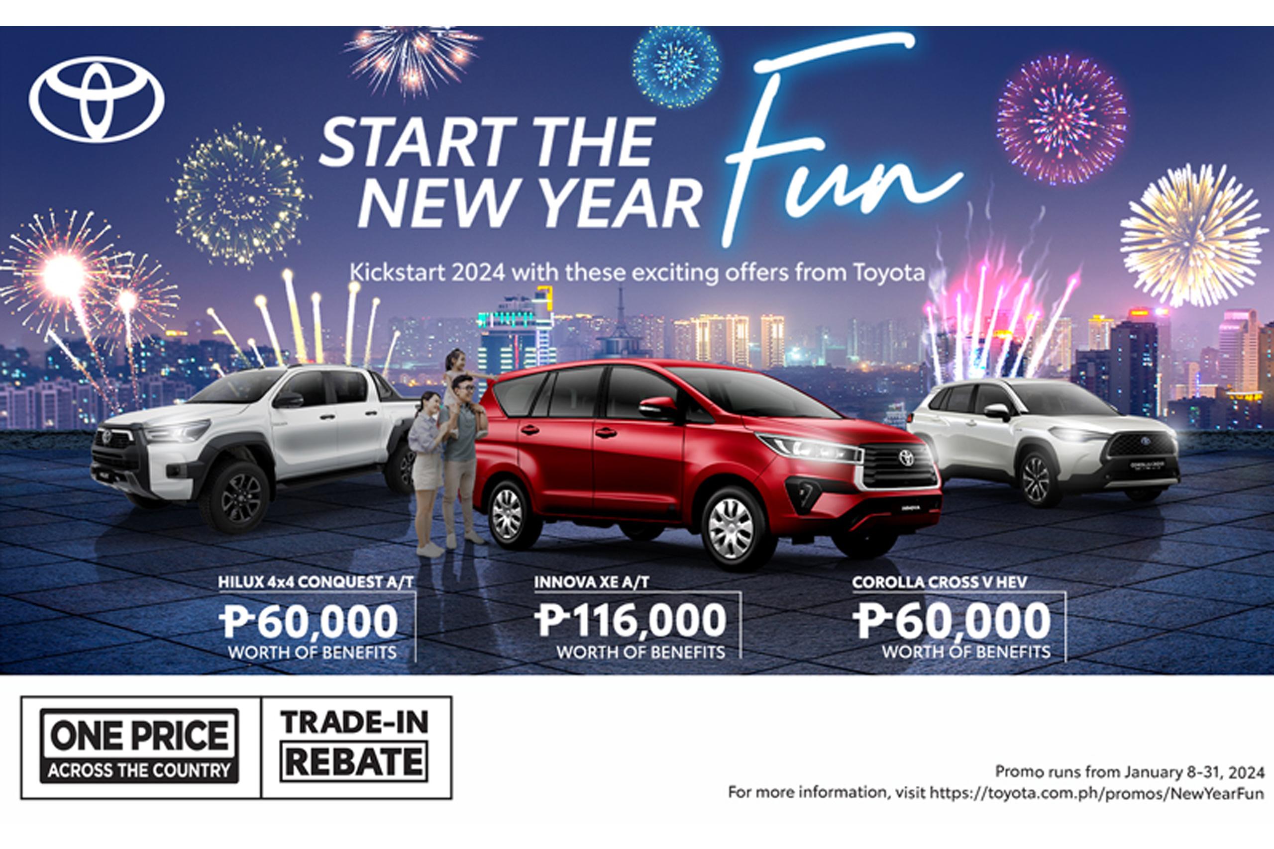 Toyota Motor Philippines (TMP) is ringing in the new year with deals you wouldn't want to miss. This January, the leading mobility company is offering customers low monthly plans, free periodic maintenance for their brand-new ride, trade-in rebates, and more.