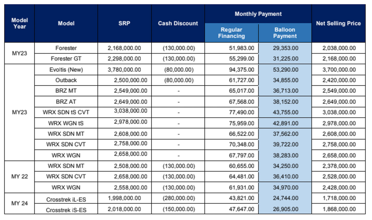 Subaru offers exclusive financing deals with Maybank, BPI, and BDO