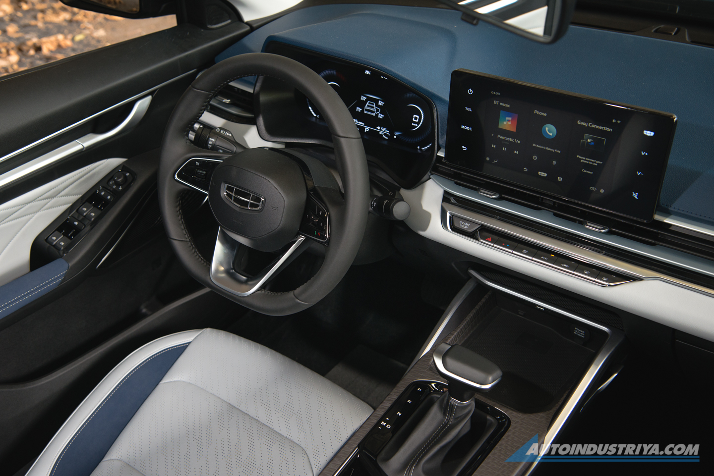 If you're a fan of clear (or no) tint, then the Emgrand Premium is a perfect candidate for it just so you can show off that blue and white leather interior. The dash, the door cards, and the seats are done that way. Granted, not everyone is a fan of that color combination especially if you have kids, but it just adds to the cool factor of the car. It almost makes me wonder why they didn't do this kind of option for the Coolray.