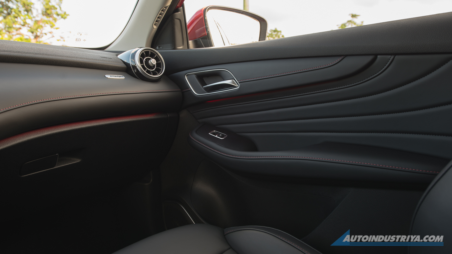 There is a faint but distinct red stitching on the leather upholstery, a brushed aluminum panel on the center console, and chrome frames around the aircon vents. I like that the only controls in the cabin are the toggle switches that use up very little space. It gives off a feeling of spaciousness and calmness you don’t get when bombarded with buttons and knobs in the cabin.