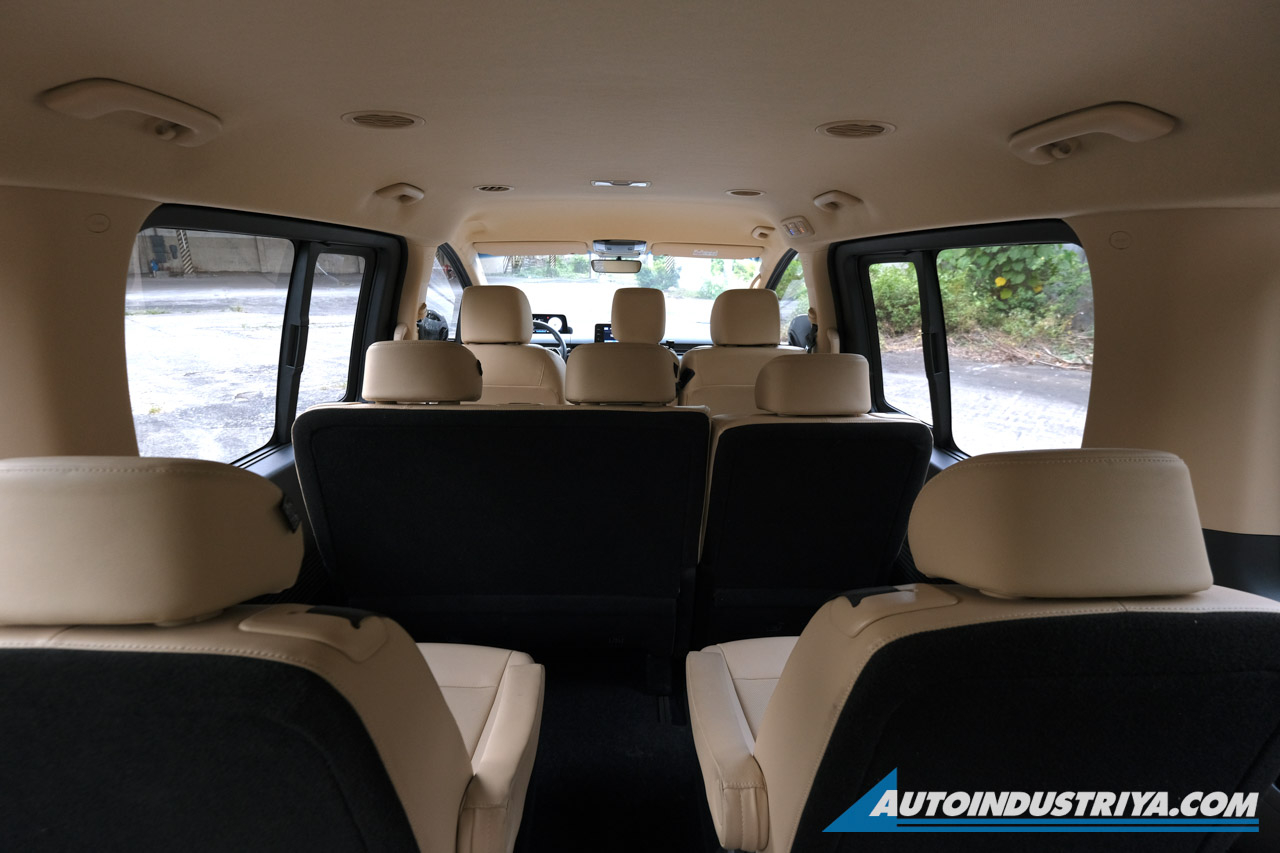 There are no automatic sliding doors here for the GLS+ variant, so you do have to open it by yourself to get inside the van. And when you do, you're welcomed with a beige and black interior motif. As I've said with this being the premium economy class version, the cabin is far from being in any way an economy class with exposed metal panels and thin bench-type seats.