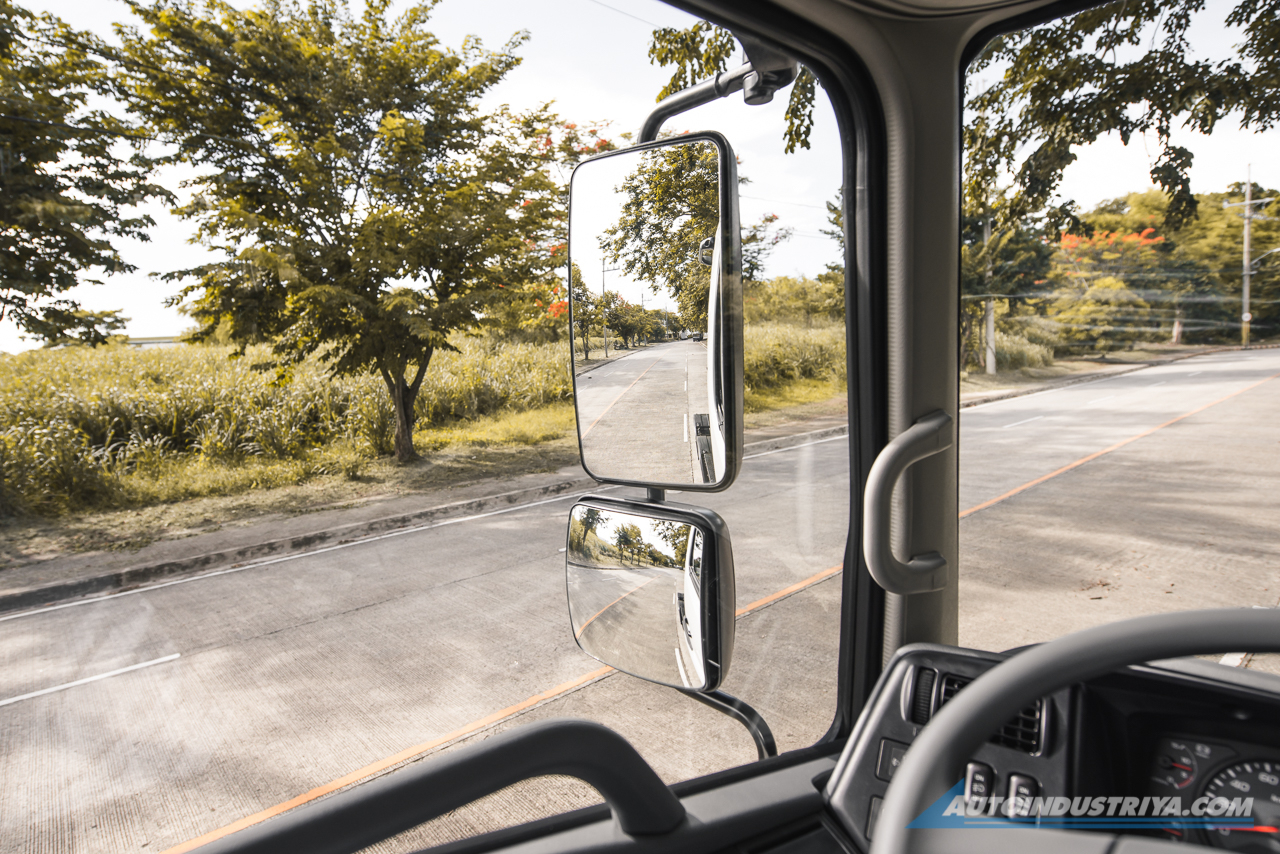 I did, however, notice that there were two features missing. The first is the absence of a secondary glass panel on the driver door that would allow a driver to see down; something very useful if you have to navigate roads with a lot of motorcycles or bikes. The convex mirrors do make up for it, but some Fuso Super Great versions do have that window, so I just found it odd that this one didn't come with such a feature. The other is the absence of a central rearview mirror; that makes sense because, well, the trailer would block it anyway.