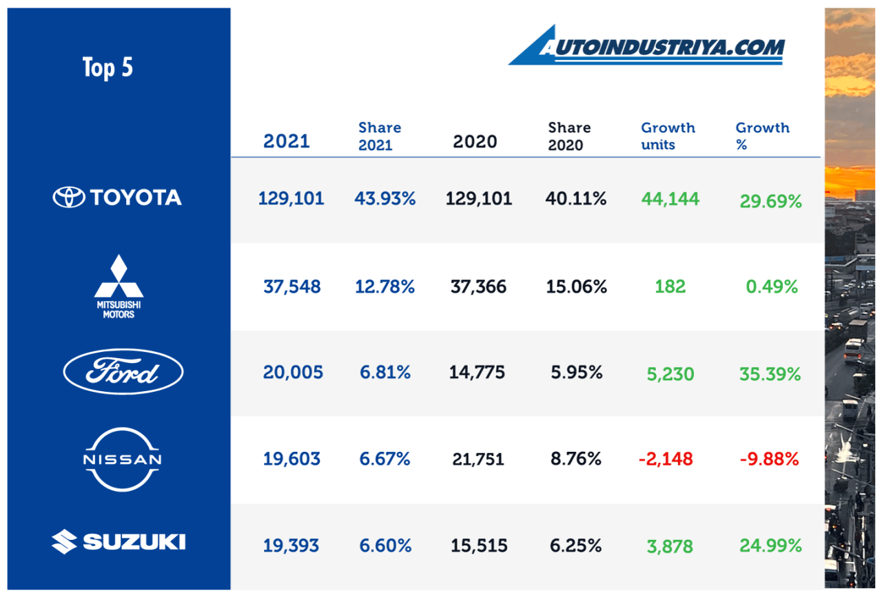 The Philippine auto industry begins recovery in 2021 with an 18.42% sales increase, reporting a total of 293,891 units sold.