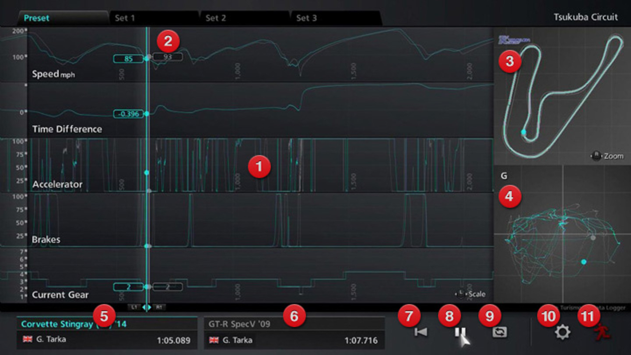 Huh? Telemetry? What’s that? Glad you asked. The telemetry is a tool that records your inputs on the wheel, and the pedals, and provides data for you to fine-tune your driving. It says where you’re being fast, and where you’re being slow compared to the data of others. It basically gives a better assessment of how your driving performance is.