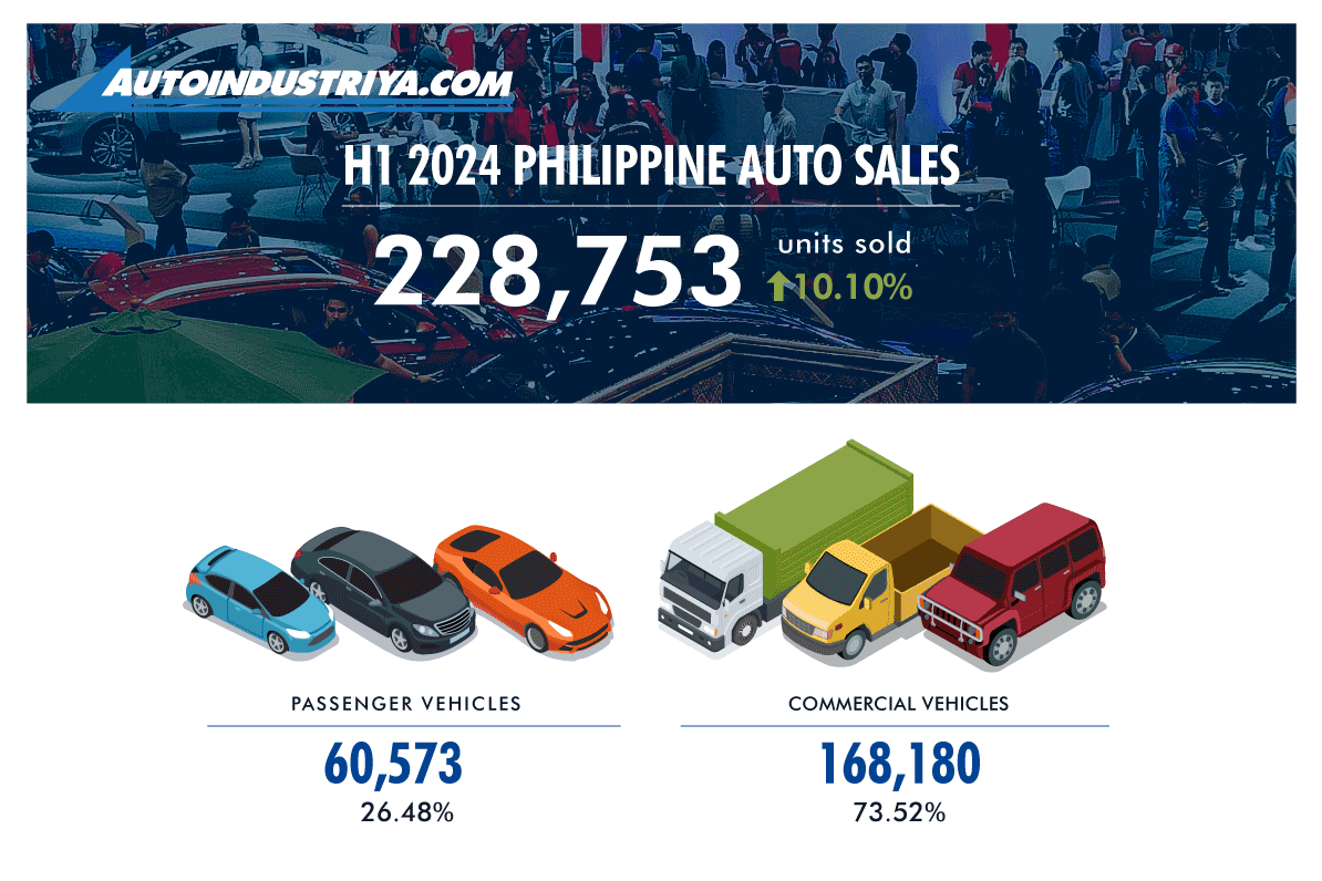 Philippine auto sales posts 228,753 units sold; increases 10.1% for the first half of 2024 despite slow June