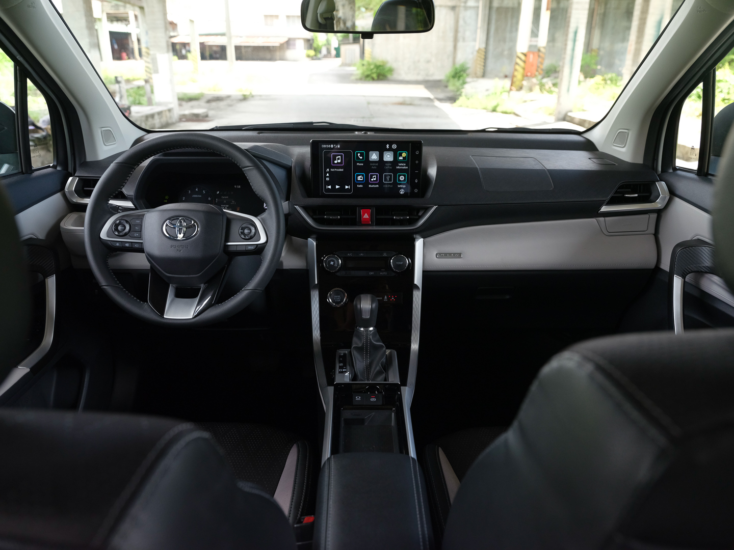 The top-of-the-line Avanza 1.5 G has a predominantly black dashboard with silver accents on the side aircon vents. The seats are finished in black and brown fabric upholstery, while the three-spoke steering wheel is wrapped in urethane.