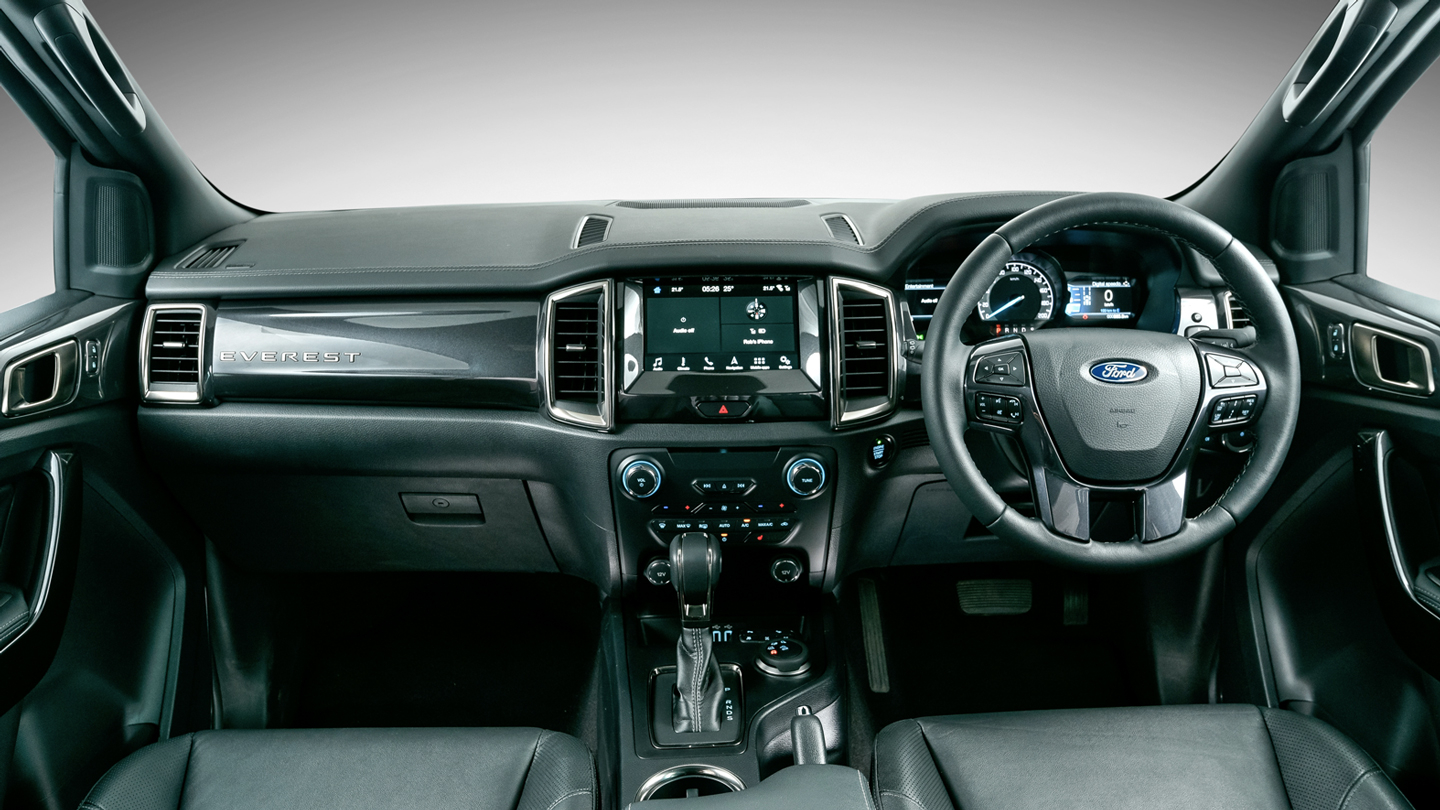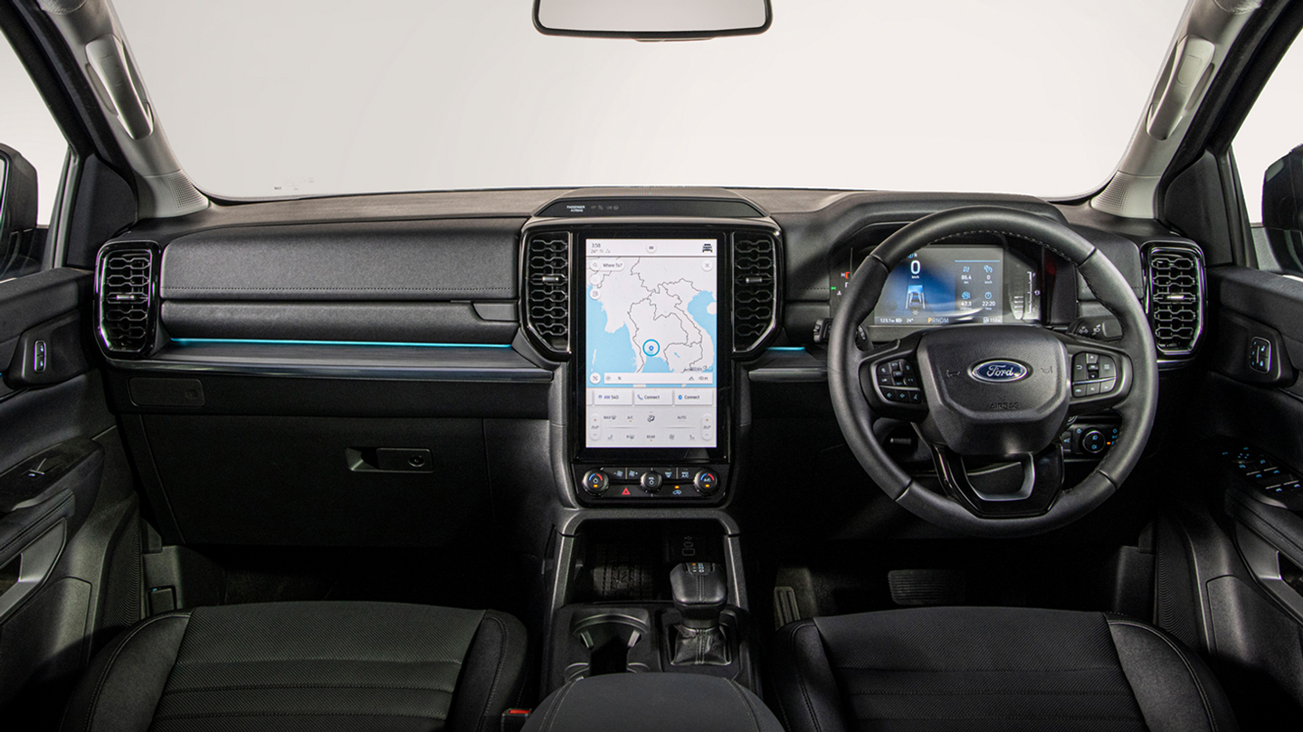 Climb aboard the Everest and you'll see that it now has the Ranger's new interior design. No longer does it come with a horizontal touchscreen at the center of the dashboard. Instead, Ford opted for a tablet-style touchscreen that now runs on SYNC4A. Depending on the model you're getting, the screen can either be 10.1-inches or 12-inches in size.