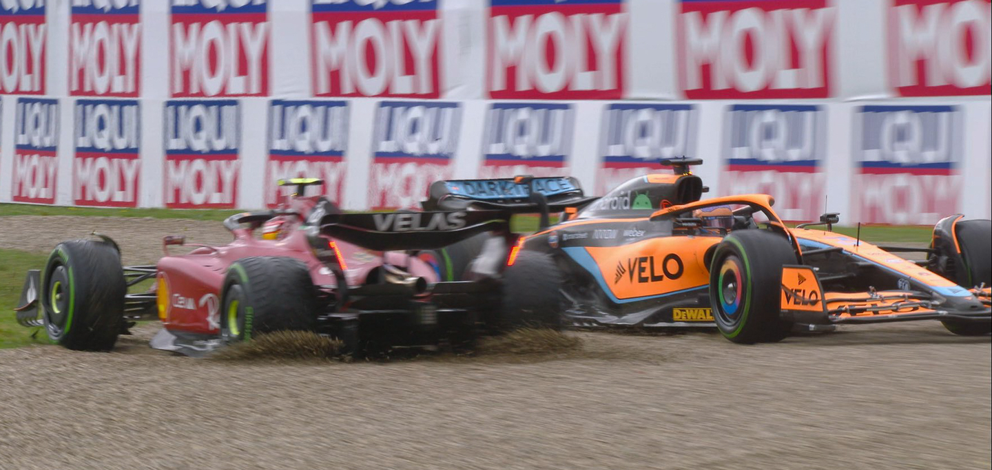 On the other hand, Carlos Sainz, who just signed a fresh two-year deal with Ferrari, had another disastrous weekend. The Spaniard spun during wet qualifying and only managed 10th. After making up ground in the sprint race to start 4th, he got tangled up in the main race with Daniel Ricciardo's McLaren at turn 1 and ended up beached in the gravel, effectively ending his race on the very first lap. Sainz now had DNFs in the last two races, and quite simply, the smooth operator is having a very rough time.