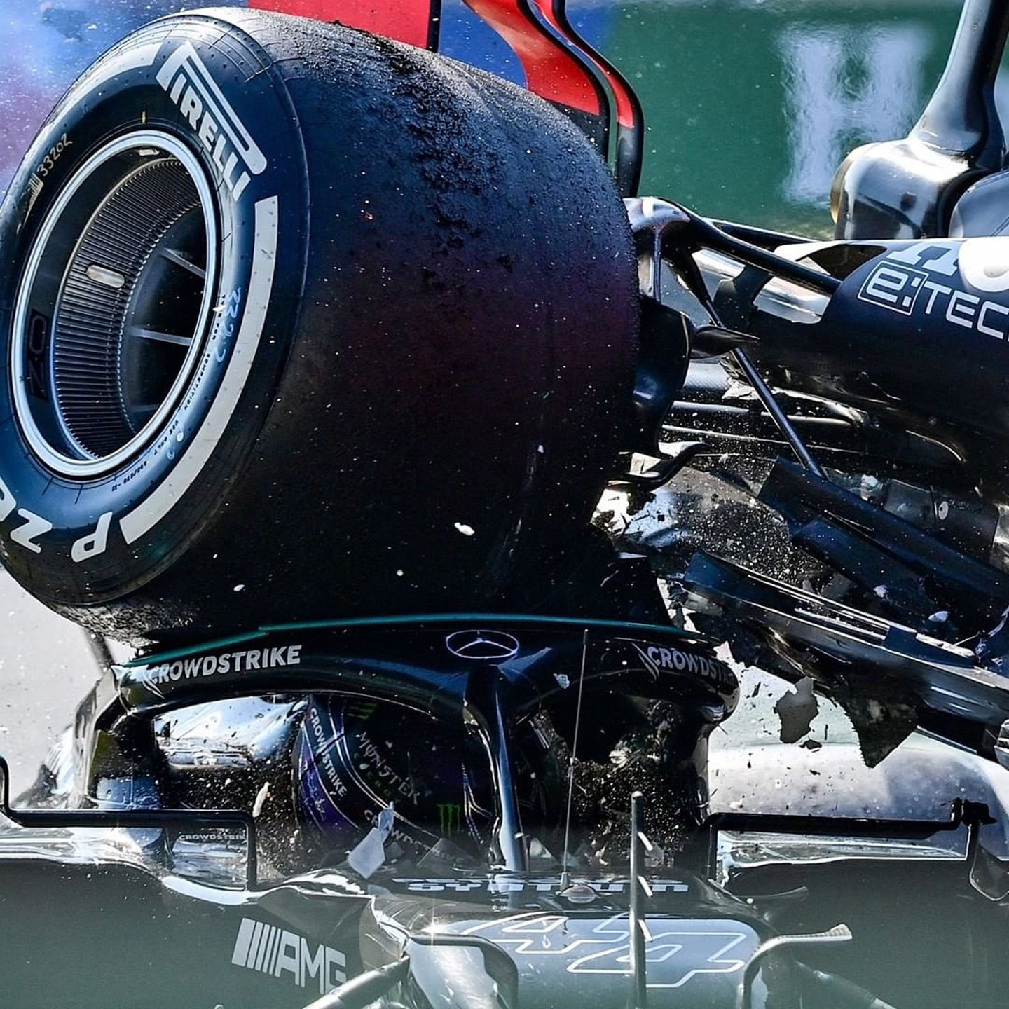 If you weren't able to watch the race, Verstappen hit the Mercedes going into the corner, and the Red Bull ended up being on top of Hamilton. One of the wheels could even be seen hitting Hamilton's helmet. If it weren't for the halo system that was implemented in the 2018 season, the outcome might have been very different. Worst case, the 7-time world champion might not have been able to walk away from the crash as he did.