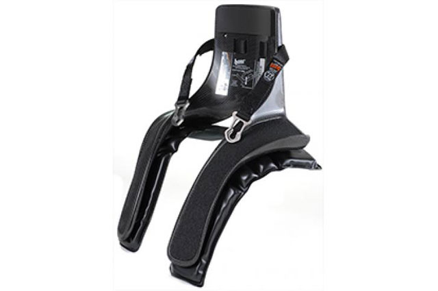 More recently the HANS (Head and Neck Support) system has been introduced to the world of motorsport and is required in higher level of motorsports like Formula One. Primarily made of carbon-fiber, the device resembles a U-shape with the back of the U set behind the neck with two arms laying flat along the top of the chest over the pectoral muscles; it is generally supported by the shoulders. It is attached to the helmet with two anchors on either side. The HANS device provides support to your head and neck and prevents basilar skull fracture and more serious and fatal injuries in the event of a crash.