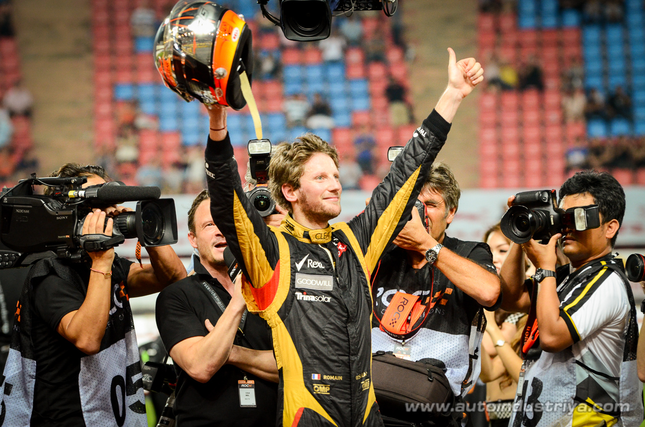 The main event of the ROC is about finding the champion of champions. Fresh from his runner-up finish in the Nations Cup the night before, French Formula 1 driver Romain Grosjean bested 15 other motorsport stars including F1 superstars Michael Schumacher, Sebastian Vettel, and David Coulthard; Le Mans legend Tom Kristensen; and 2011 titleholder and fellow Frenchman Sebastian Ogier in the 2012 Race of Champions. Grosjean was crowned Champion of Champions after an evening of thrills at the Rajamangala National Stadium in Bangkok.