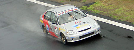 As Round 2 of the PNTCC was about to start, the clouds opened up and dumped a torrent of rain on the track. The different teams struggled to change their setups and mount new tires. The track officials immediately decided to momentarily postpone the race because of the heavy downpour.