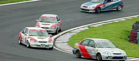 Tension broke loose once again as the green light was about to go on, Nilo Pazcoguin's car was not able to start. The Autoplus crew scrambled into the grid area to push the car away to safety and into the pit area as directed by the race steward Gabby Intengan. Amidst the pre-race drama, Pazcoguin's got his car to start just about the same time the cars left the starting line. "A fuel pump fuse problem was the cause," said Raymond Go, Team Autoplus.