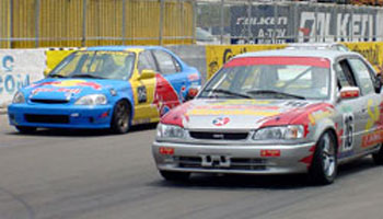 Good and consistent driving has made the 2003 Super Saloon Championship a three-way battle and an exciting one too. In qualifying it was all Jody Coseteng in the San Miguel/Caltex Toyota as he put in a screaming lap taking pole position by almost half a second. In second was the Redbull Honda of Mike Anton with the two Petron SRA Honda's of Kookie and Louis Ramirez in third and fourth respectively. Monching Guitierrez was the fastest qualifies of the Super Saloon B drivers in an excellent effort.