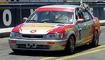 On lap 2 Ramirez slipped by Bon for fifth, on the next it was Godinez and on the third lap, brother Louis allowed Kookie to slip into third spot and close on Anton. Monching Guitierrez would drop out with some engine problems. John Sambo was having a quiet ride in the lead of the Super Saloon C and started setting some good times. Miguel Ramirez was making a charge and had moved up to fifth position but would hit the bus stop tires and be dropped down the order. Clutch trouble would force Anton into the pit and down the finishing positions. Try as hard as he might, Ramirez could not catch the flying Corolla. Dominic Bon would suffer from brake failure as a stone cut the rubber brake hose giving him a scary ride into the hairpin barriers. Coseteng would take the win with Kookie Ramirez in second and Louis Ramirez in third. Louis Ramirez would take the Class A win and Francis Godinez the Class B win. John Sambo would take a steady drive and take the Class C win.