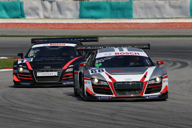 Alex Yoong raced to a back-to-back victory for Rounds 7 and 8 of the Audi R8 LMS Cup in front of his home crowd in Sepang, Malaysia to retake the championship lead in the 2013 Audi R8 LMS Cup. Alex Au meanwile secured the Amateur Class Championship with his double victory.