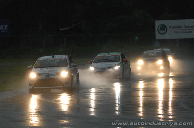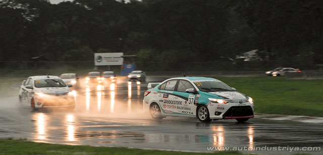 Toyota Balintawak's Choachuy (#37) blasted off from the front into the first corner followed by TQA's Dominic Ochoa (#25), who took advantage of the wet condition mayhem with a fantastic start getting ahead of 8 cars. Gono (#17) managed to move up to third.